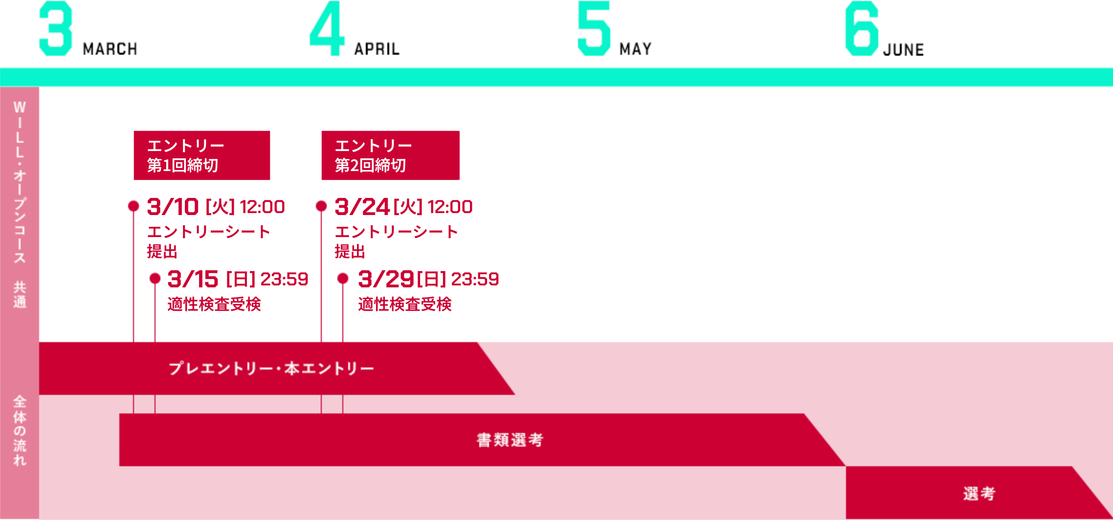 ※ワークフィールド「リーガル」については、採用コースに関わらず3月以降エントリー終了となっております。