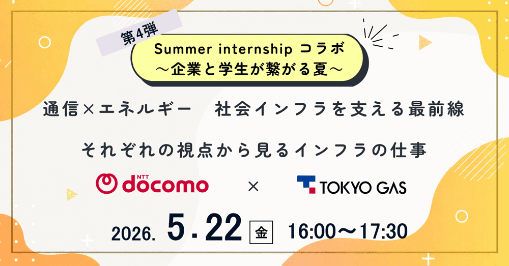 <28卒>【ウェビナー】第4弾 東京ガス×NTTドコモ Summer Internship コラボ ~企業と学生が繋がる夏~